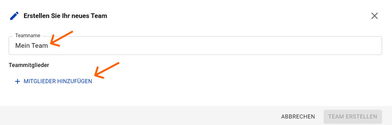 Geben Sie einen Namen für das Team ein und wählen Sie die gewünschten Mitglieder aus.