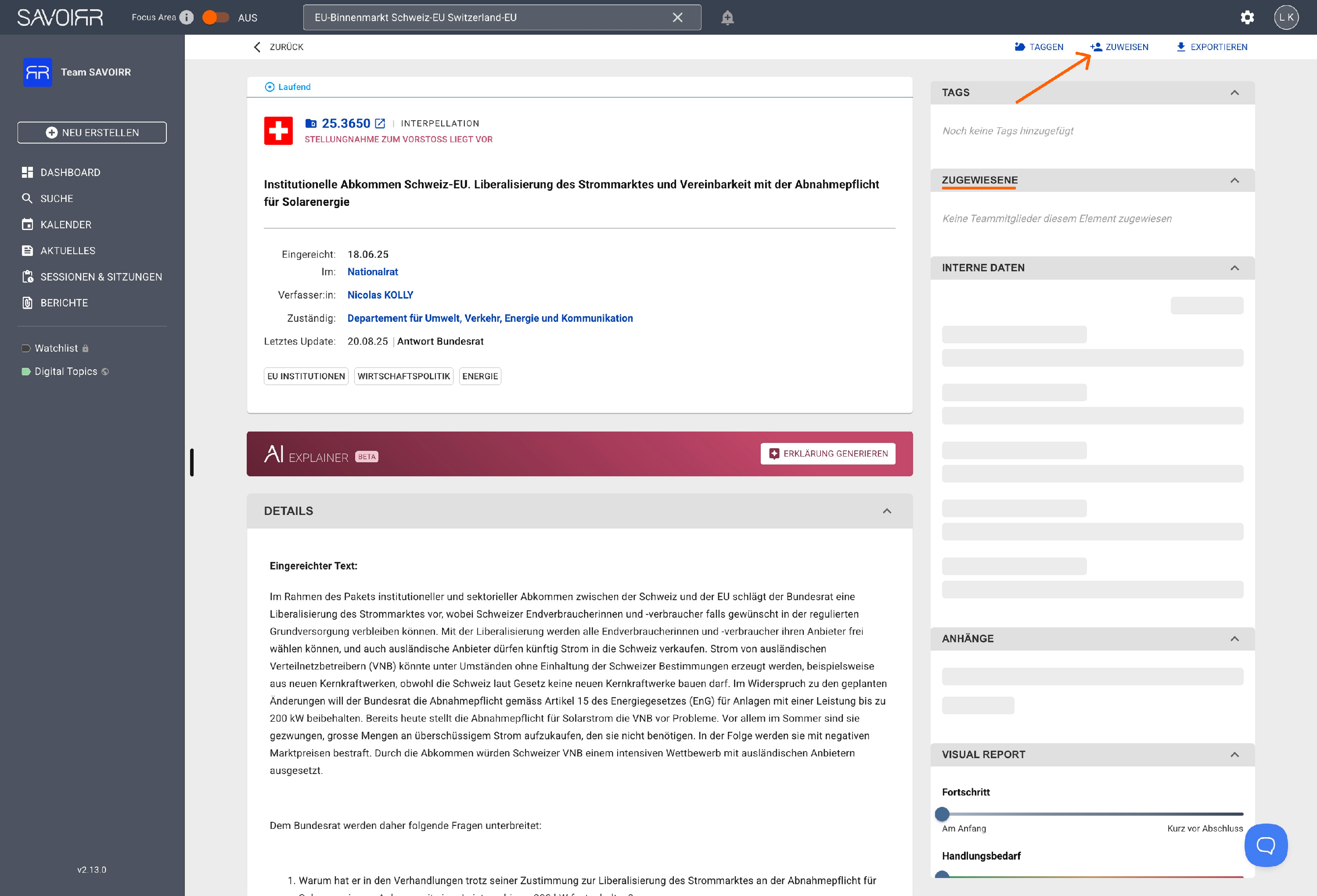 - Klicken Sie oben rechts auf den Button Zuweisen.